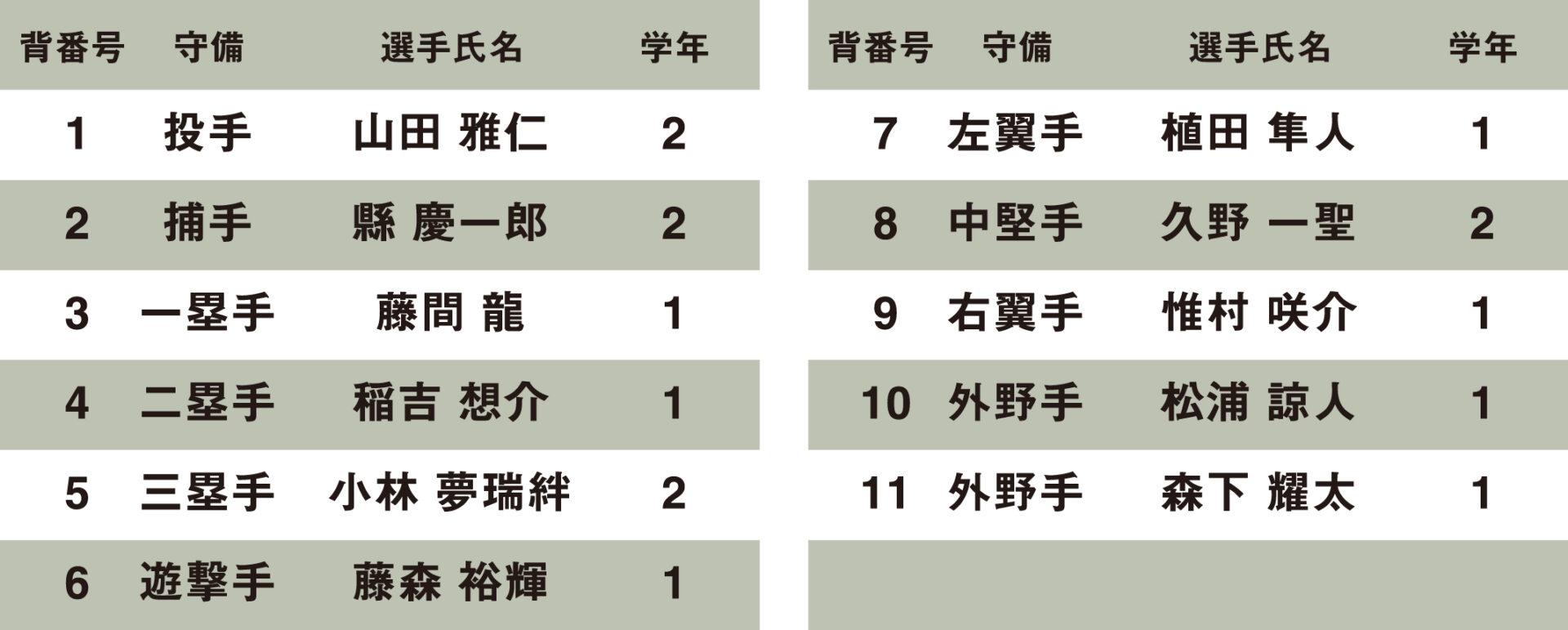 経験豊富で走攻守の柱となる主将の縣をはじめ、全国を経験している投手の山田、内野手の小林、攻撃の要となる久野を中心に、伝統の開誠館野球で優勝を目指します。