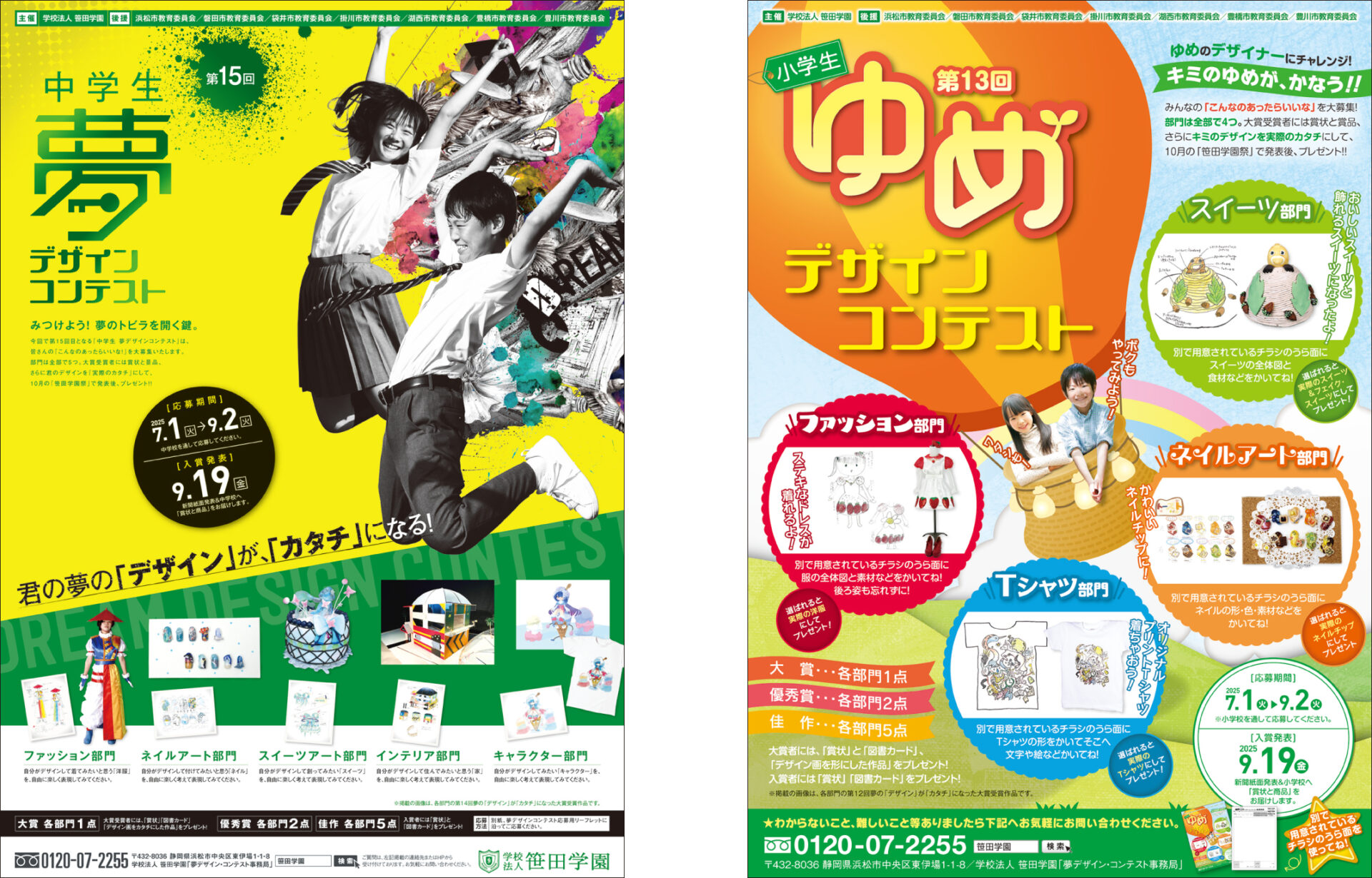 そんな同校が15年前に始めたのが、『夢デザインコンテスト』。当初は、中学生の部のみで100点程の応募だった。3年目に小学生の部も設立され、今では小中学生合わせて約3000点の応募が集まるビッグイベントへと成長した。数多の応募の中からファッション、ネイルアート、スイーツアート、インテリア、キャラクター、Tシャツといった部門ごとに大賞、優秀賞、佳作が選出され、大賞作品については同校の講師が実際に製作。頭の中で描いたものが、実際にカタチとなって自分の手元に届く。まさに夢がカタチになる瞬間を経験できる数少ないイベントだ。
