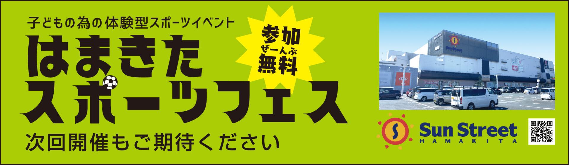 令和7年12月21日(日)に、サンストリート浜北にて、子どもの為の体験型スポーツイベント『第2回はまきたスポーツフェス2025』が開催された。当日はあいにくの雨となったが2,000名を超える家族連れが会場を訪れた。