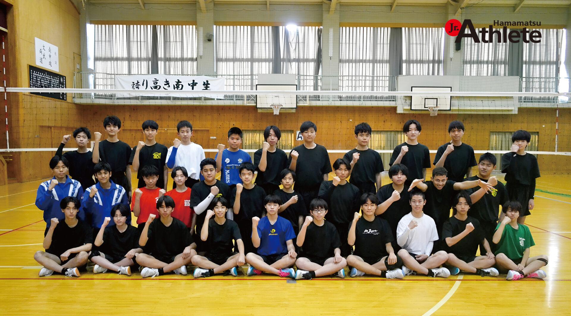 新人戦の県大会でベスト4進出を果たし、東海大会出場を果たした南部中学校男子バレーボール部。人数も多く、明るく元気なことと、サイズのある選手が多く、強力な攻撃力が魅力のチームだ。