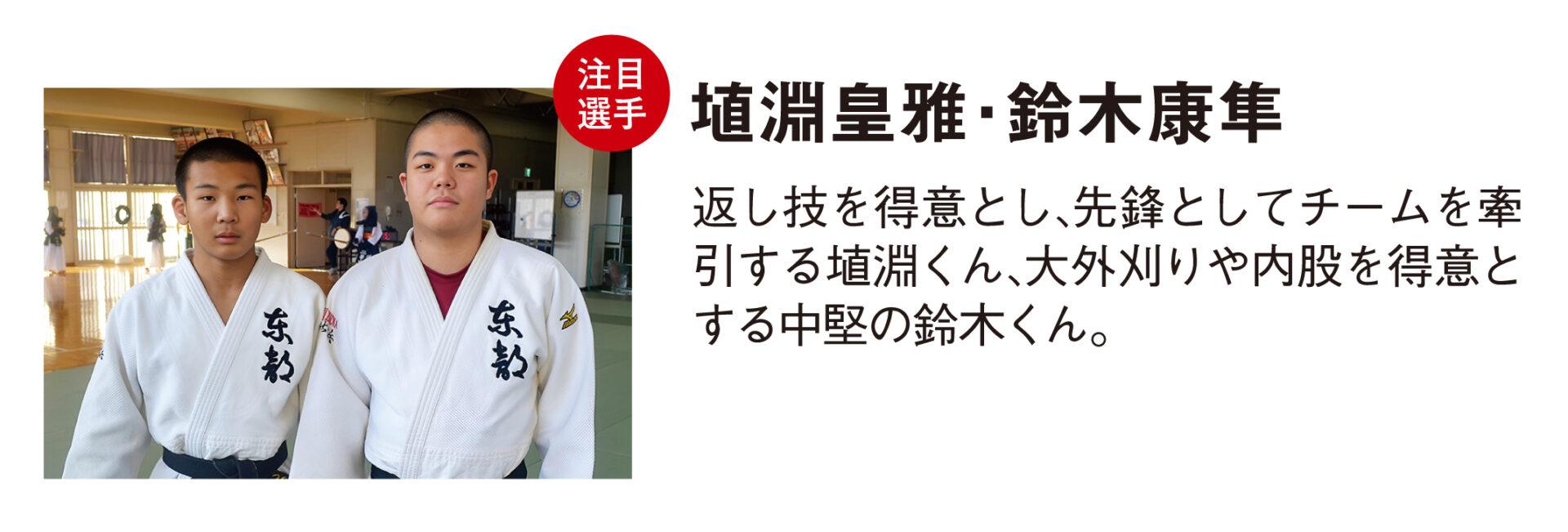 今年は、試合経験の豊富さに加え、重量級の選手を多く擁する県内でも屈指の大型チームだ。稽古では、基礎基本を徹底する。力に頼らず、柔よく剛を制す丁寧な柔道を心掛ける。優勝候補には挙げられるが、「簡単に勝てる相手はいない」と慢心はない。